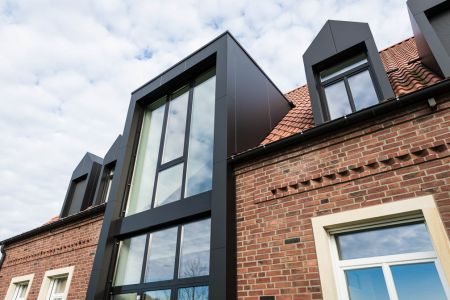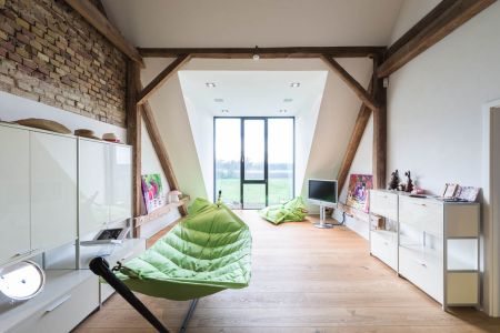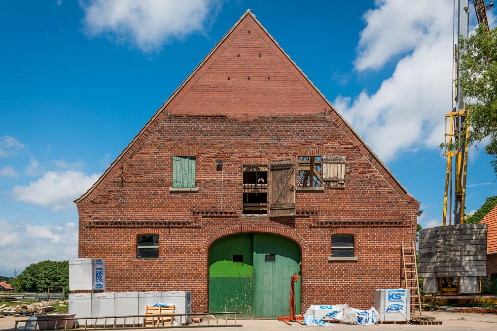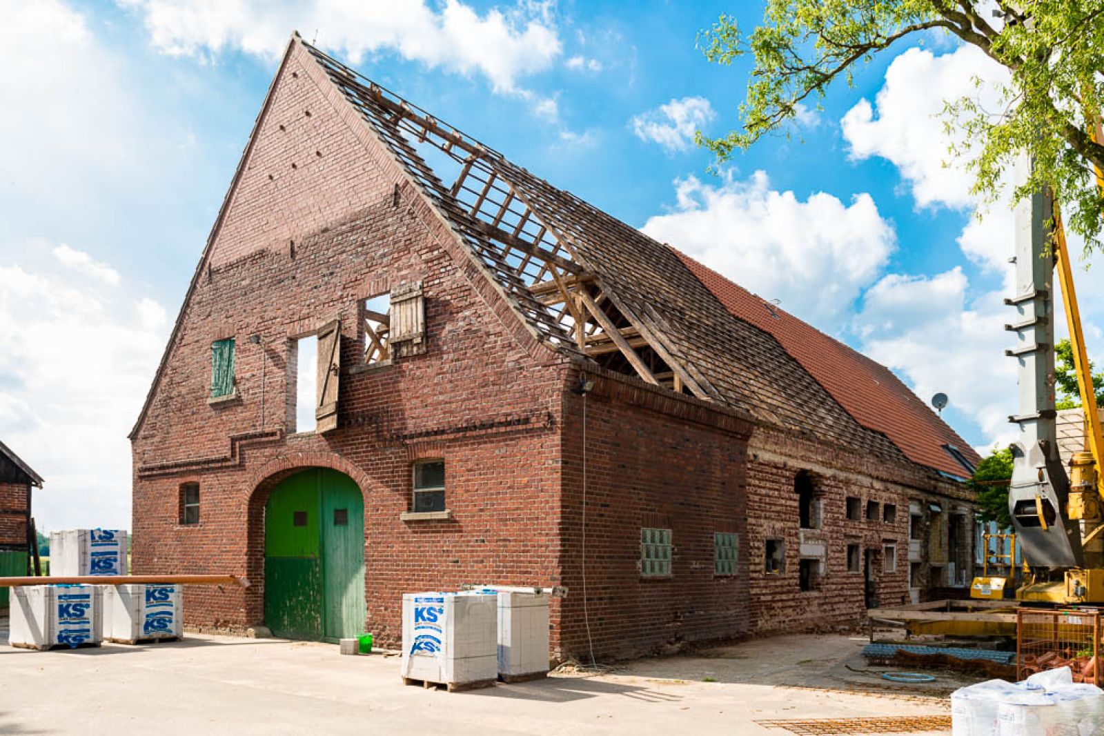 Für eine Bauherrnfamilie übernahmen wir die Realisierung eines umfangreichen und detailgeprägten Umbaus einer ehemaligen landwirtschaftlichen Hofstelle im Münsterland. Die ehemals schlichte Hofstelle zeichnete sich zwar durch eine optimale Lage für den Bauherrn aus, der ländliches Wohnen mit Pferdehaltung unweit einer Kleinstadt, kombinieren wollte, jedoch war die Substanz der weitgehend schmucklosen Hofgebäude größtenteils abgängig. Ziel war es eine harmonische Hofanlage im klassischen Münsterländer Baustil zu realisieren. Dazu wurde das ehemalige Wohngebäude mit den angrenzenden Stallungen eingekürzt und komplett entkernt. Bis auf die Außenmauern und größeren Teilen des Dachstuhls wurde das Gebäude neu aufgebaut und unter Berücksichtigung zeitgemäßer Kriterien energetisch saniert und technisch ausgestattet. Die Beheizung erfolgt komplett durch eine Wärmepumpenanlage mit einem Flächenkollektor über eine Fußbodenheizung.