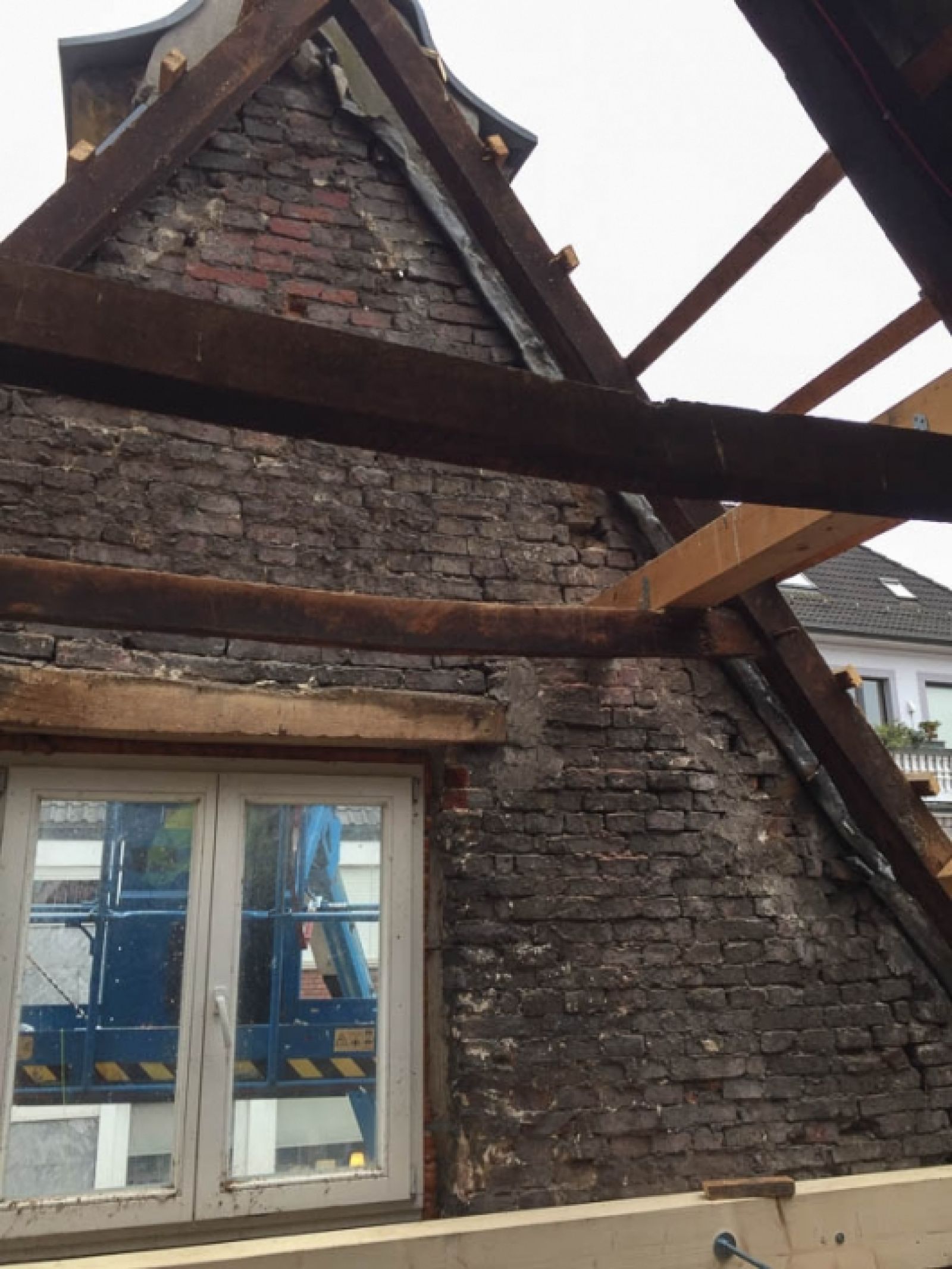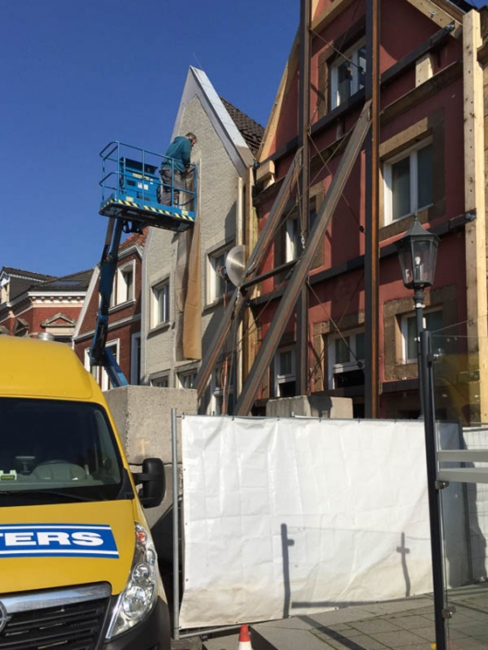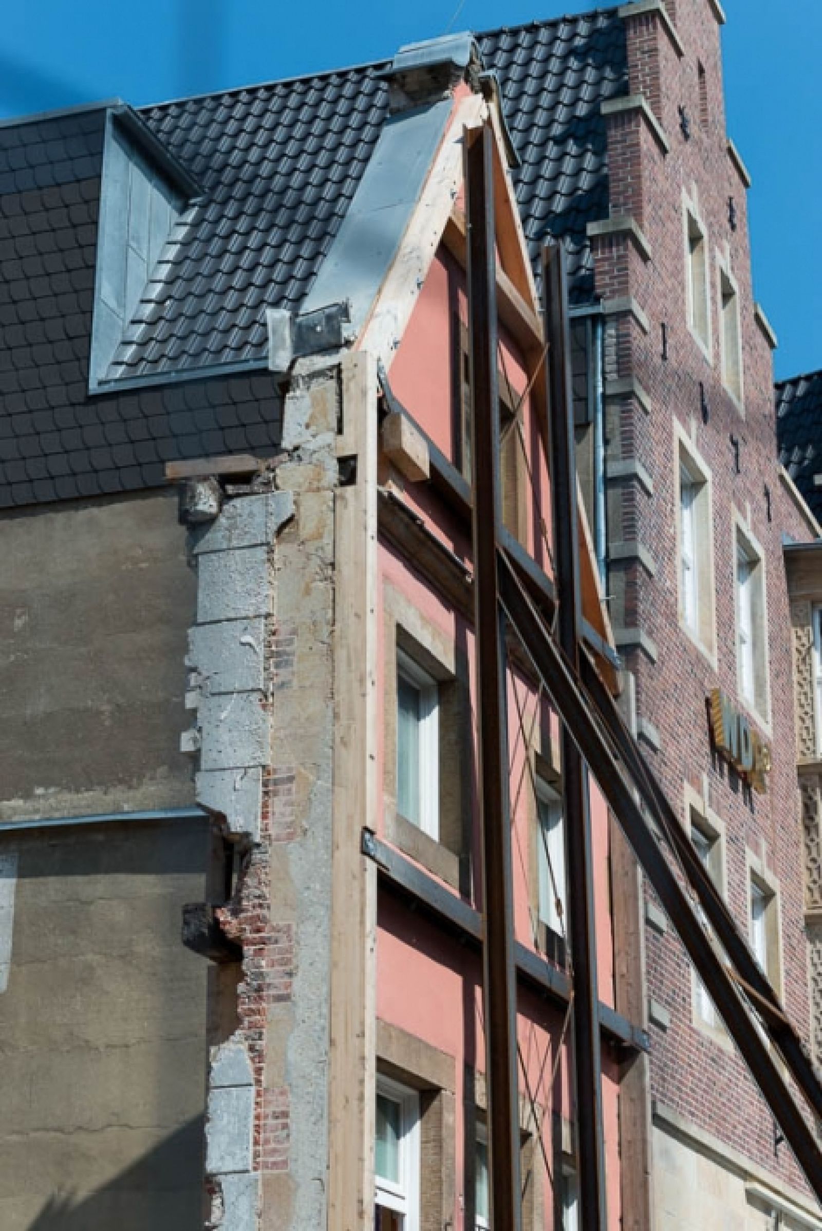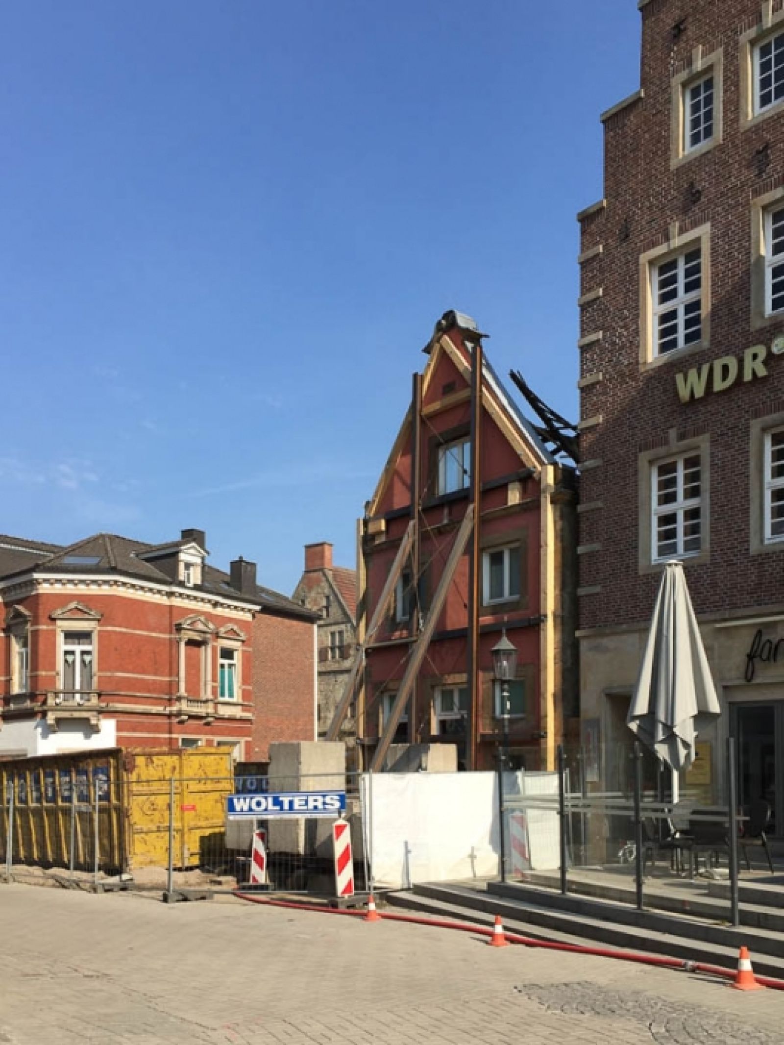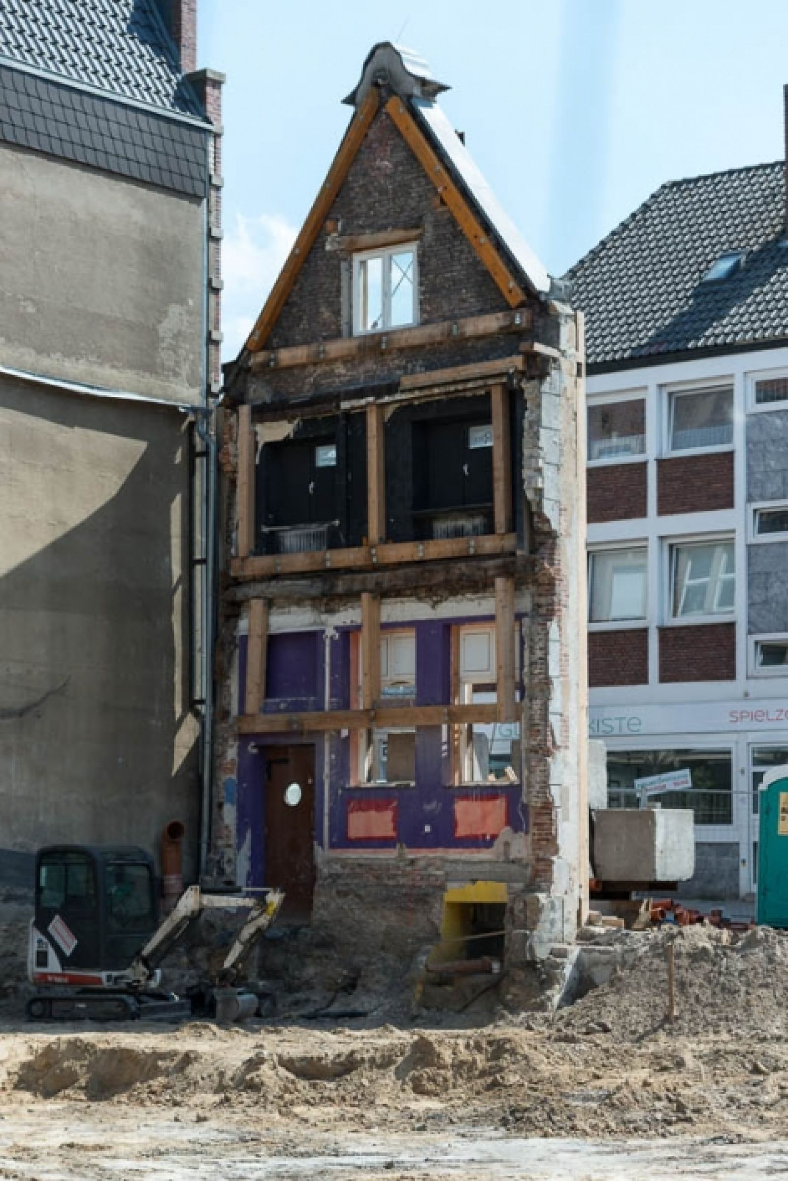 Nachdem die Giebelsicherung des unter Denkmalschutz stehenden Giebels der Marktstraße Nr. 6 abgeschlossen wurde, ist mit den Abbrucharbeiten an der Marktstraße begonnen worden.