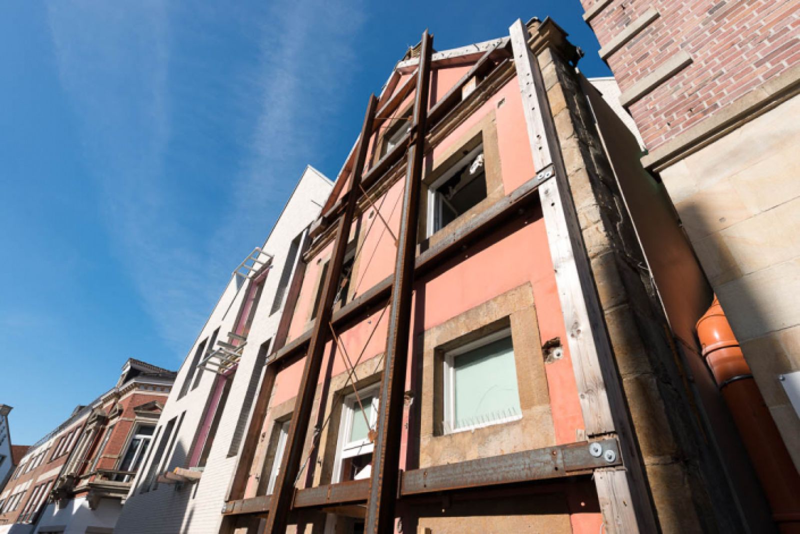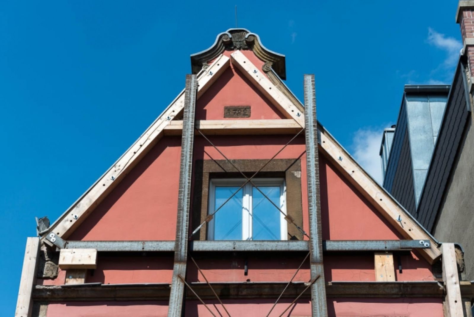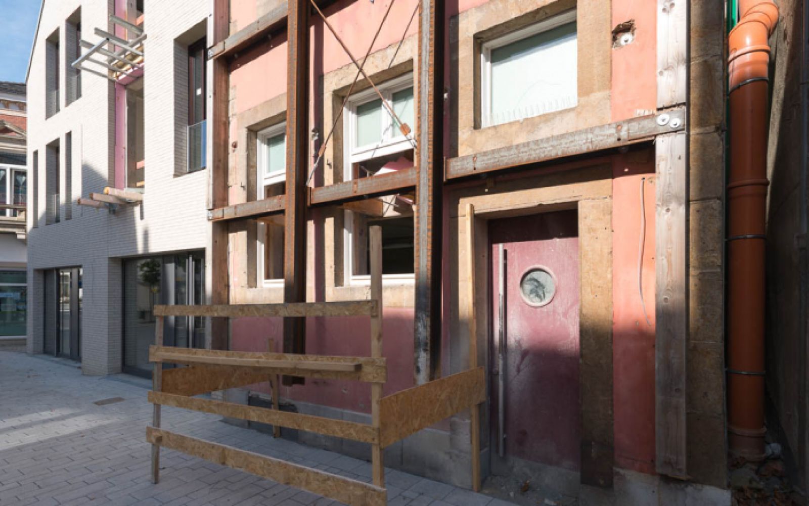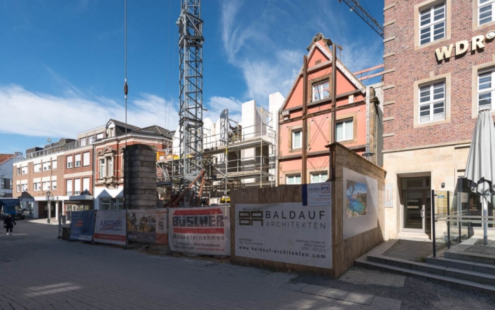 Hier wird ein Wohn- und Geschäftshaus entstehen, welches den denkmalgeschützten Giebel wieder integriert.