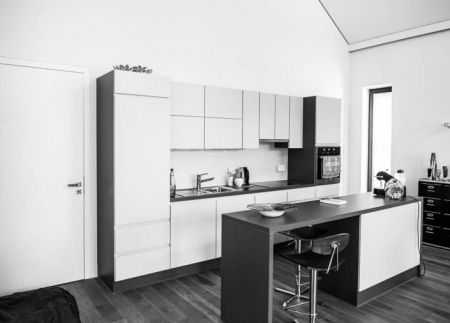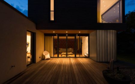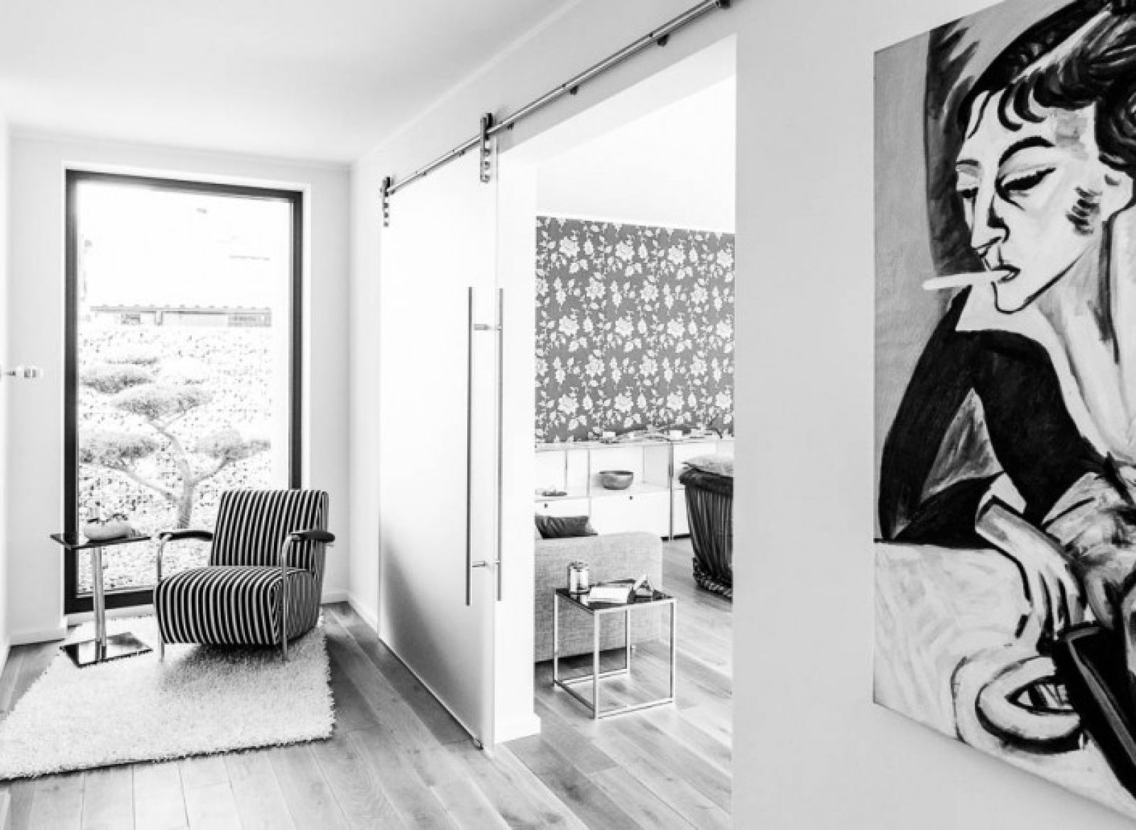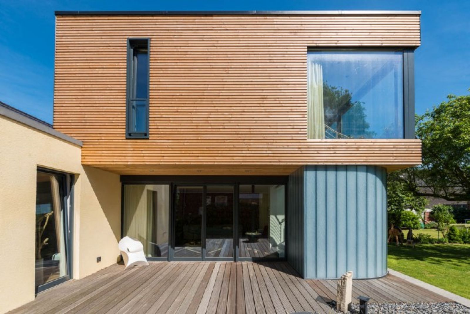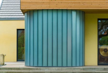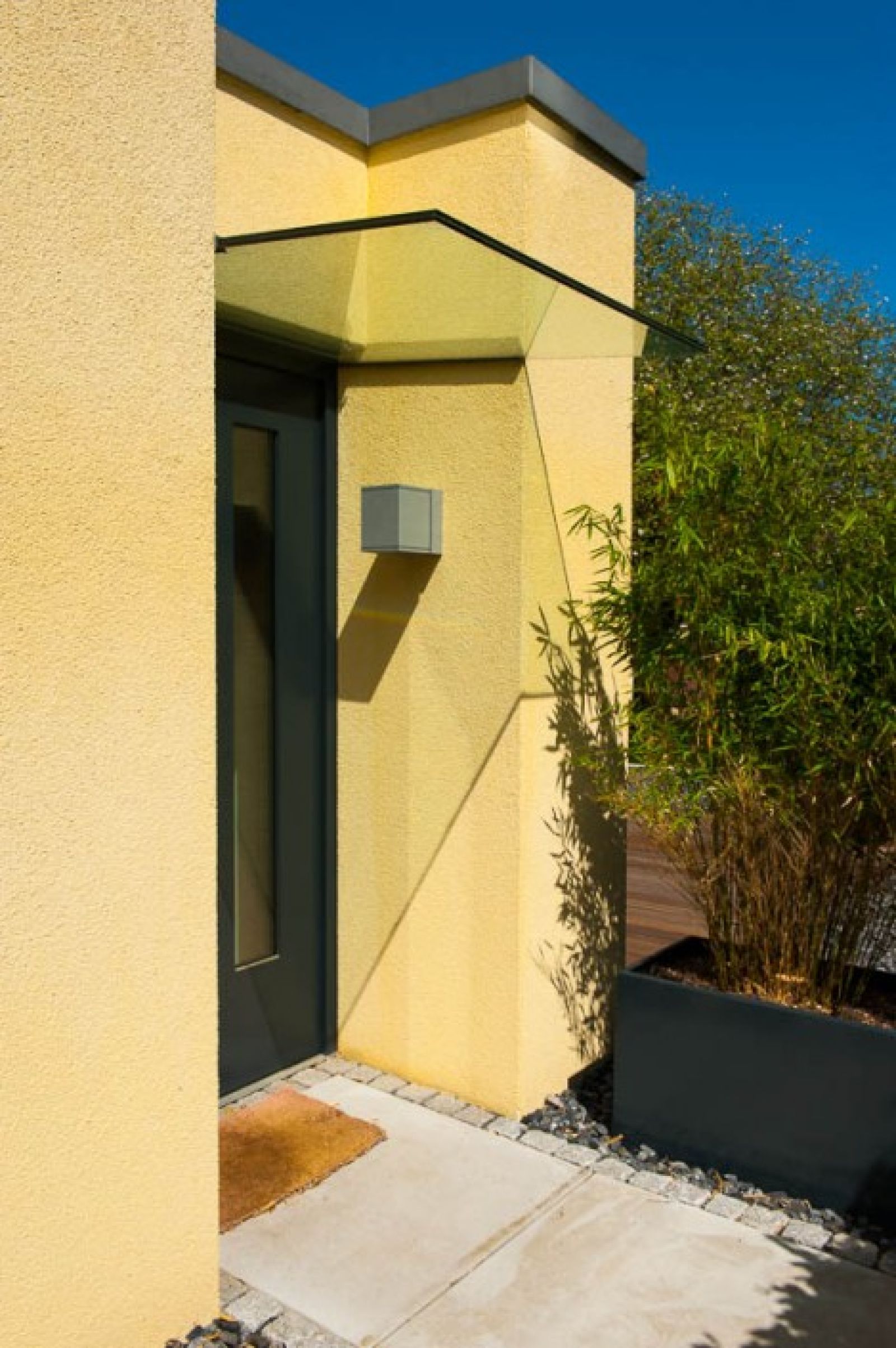 Der Bauherr wohnt gegenüber in einem gemütlichen Altbau und kaufte kurzentschlossen das freie Grundstück und baute ein kleines altengerechtes und barrierefreies Wohnhaus für 2 Personen. Aktuell wird das Haus als Heimstätte einer Klangtherapeutin genutzt und beweist seinen multifunktionalen Nutzwert. Das Gebäude hebt sich selbstbewusst von seiner umgebenden Bebauung ab und schafft durch seine Positionierung spannende Freiräume auf kleiner Grundstücksfläche. 2012 wurde eine Erweiterung realisiert