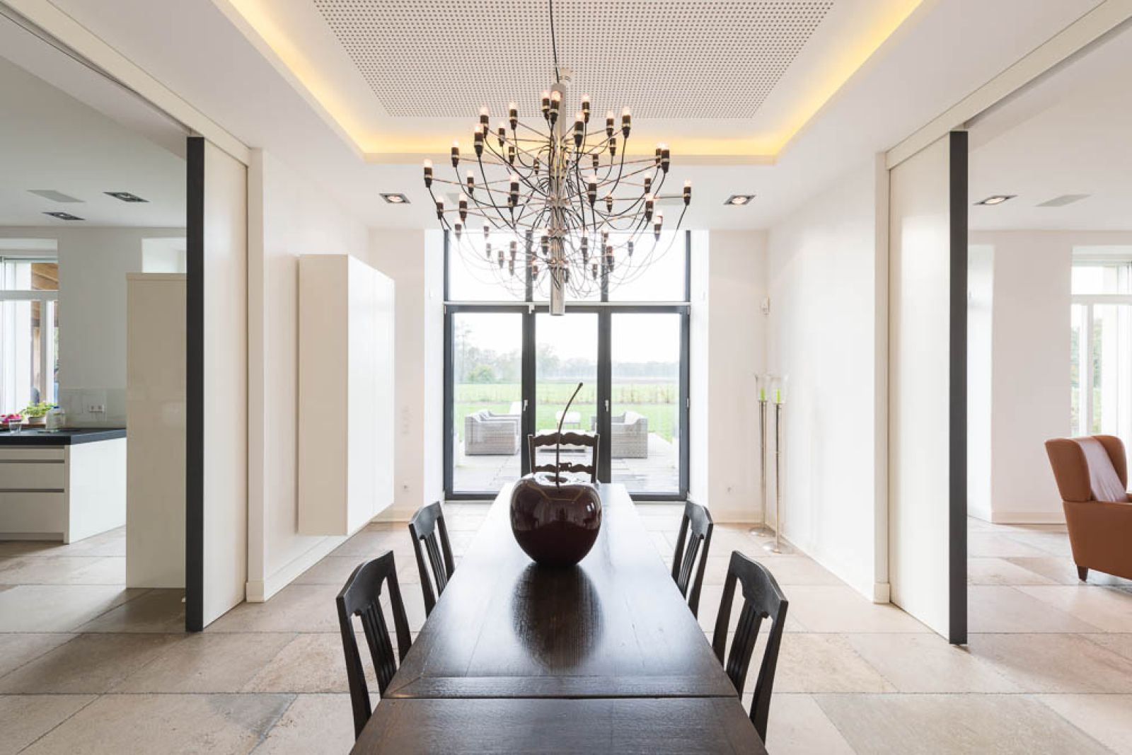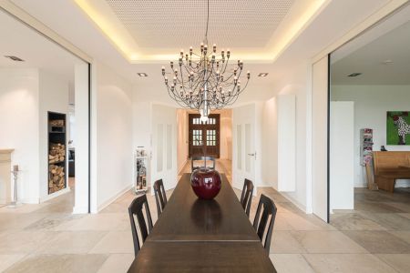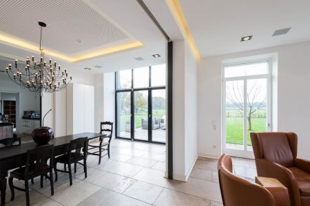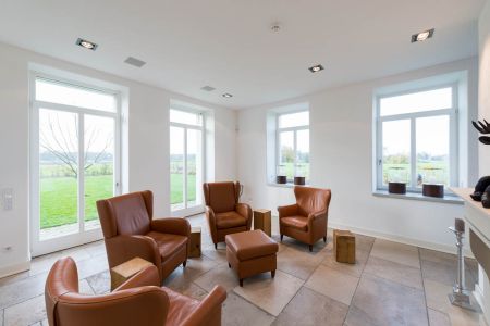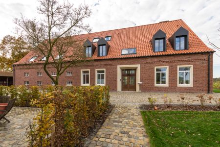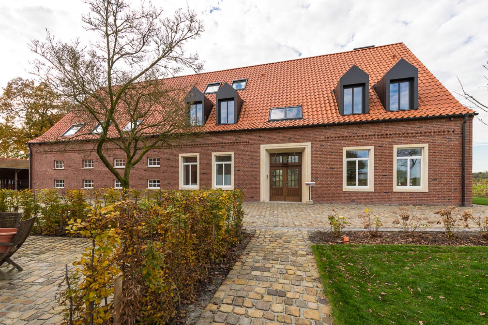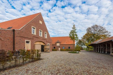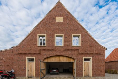 Für eine Bauherrnfamilie übernahmen wir die Realisierung eines umfangreichen und detailgeprägten Umbaus einer ehemaligen landwirtschaftlichen Hofstelle im Münsterland. Die ehemals schlichte Hofstelle zeichnete sich zwar durch eine optimale Lage für den Bauherrn aus, der ländliches Wohnen mit Pferdehaltung unweit einer Kleinstadt, kombinieren wollte, jedoch war die Substanz der weitgehend schmucklosen Hofgebäude größtenteils abgängig. Ziel war es eine harmonische Hofanlage im klassischen Münsterländer Baustil zu realisieren. Dazu wurde das ehemalige Wohngebäude mit den angrenzenden Stallungen eingekürzt und komplett entkernt. Bis auf die Außenmauern und größeren Teilen des Dachstuhls wurde das Gebäude neu aufgebaut und unter Berücksichtigung zeitgemäßer Kriterien energetisch saniert und technisch ausgestattet. Die Beheizung erfolgt komplett durch eine Wärmepumpenanlage mit einem Flächenkollektor über eine Fußbodenheizung.