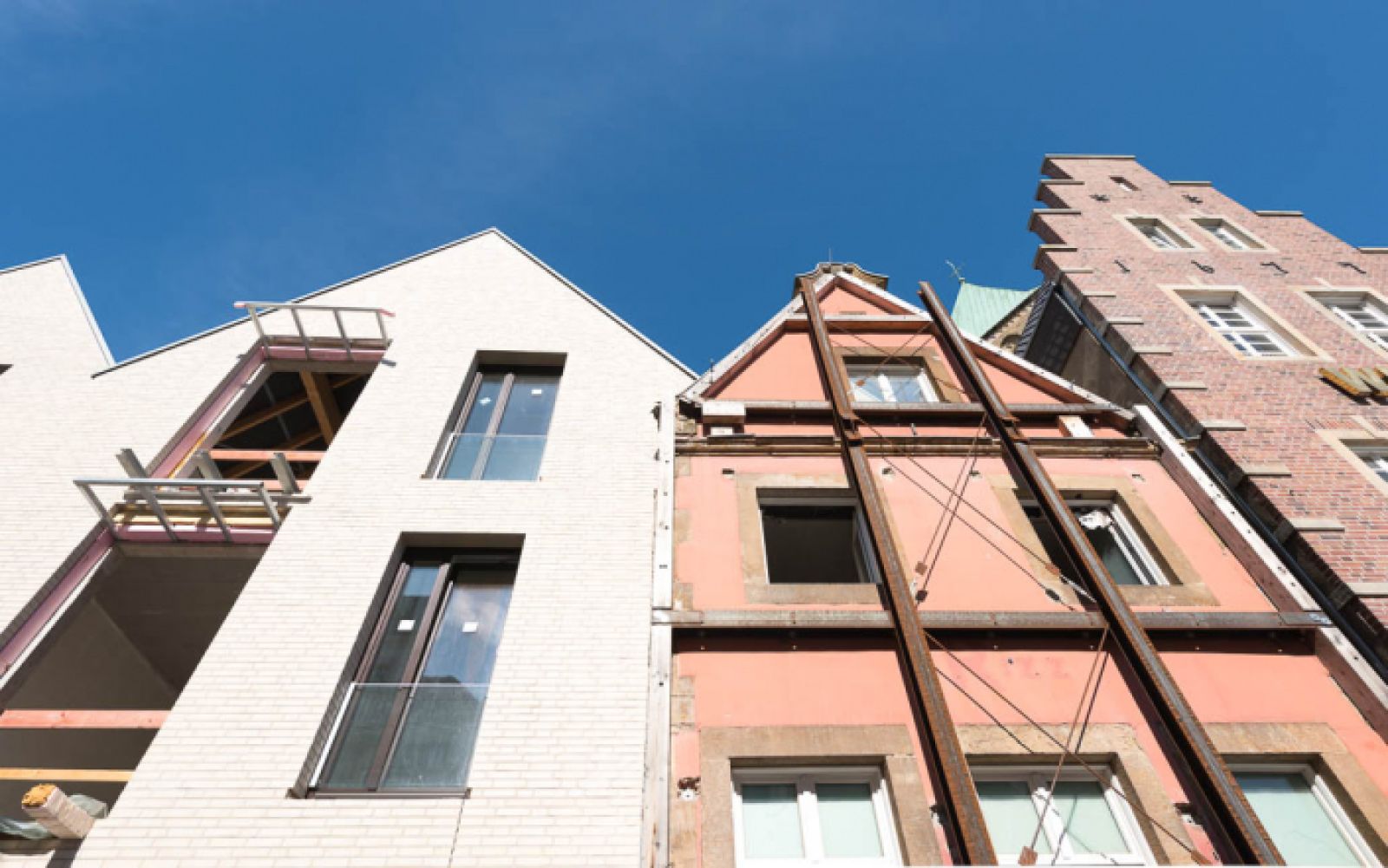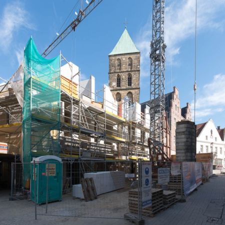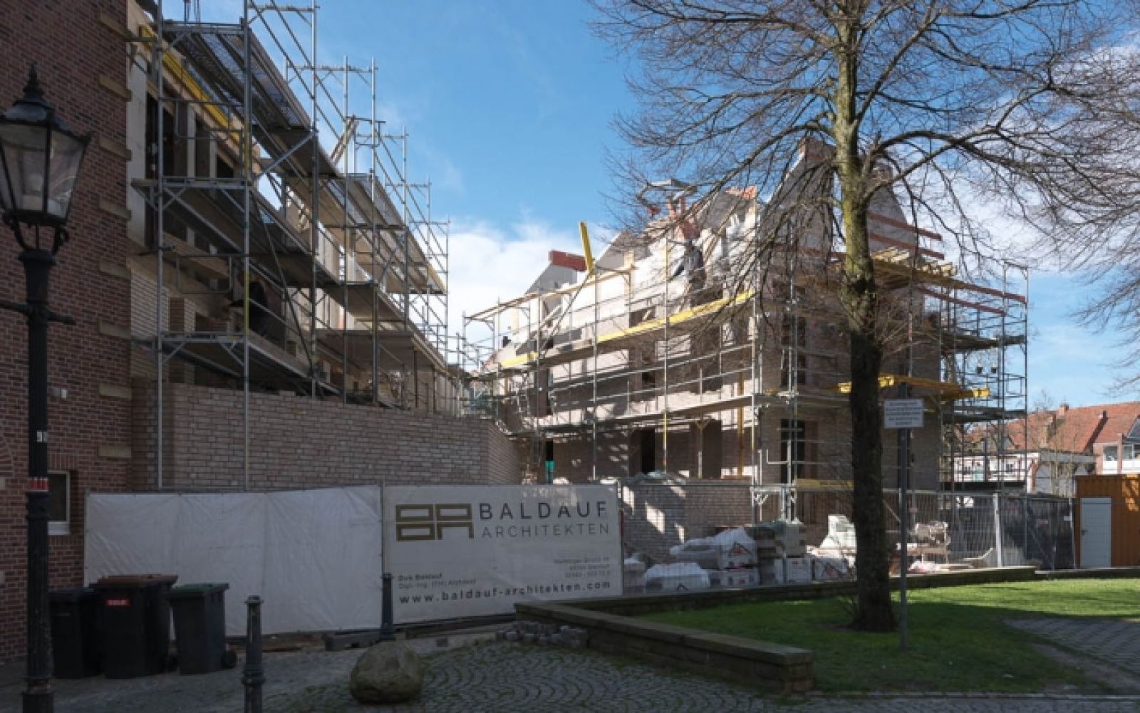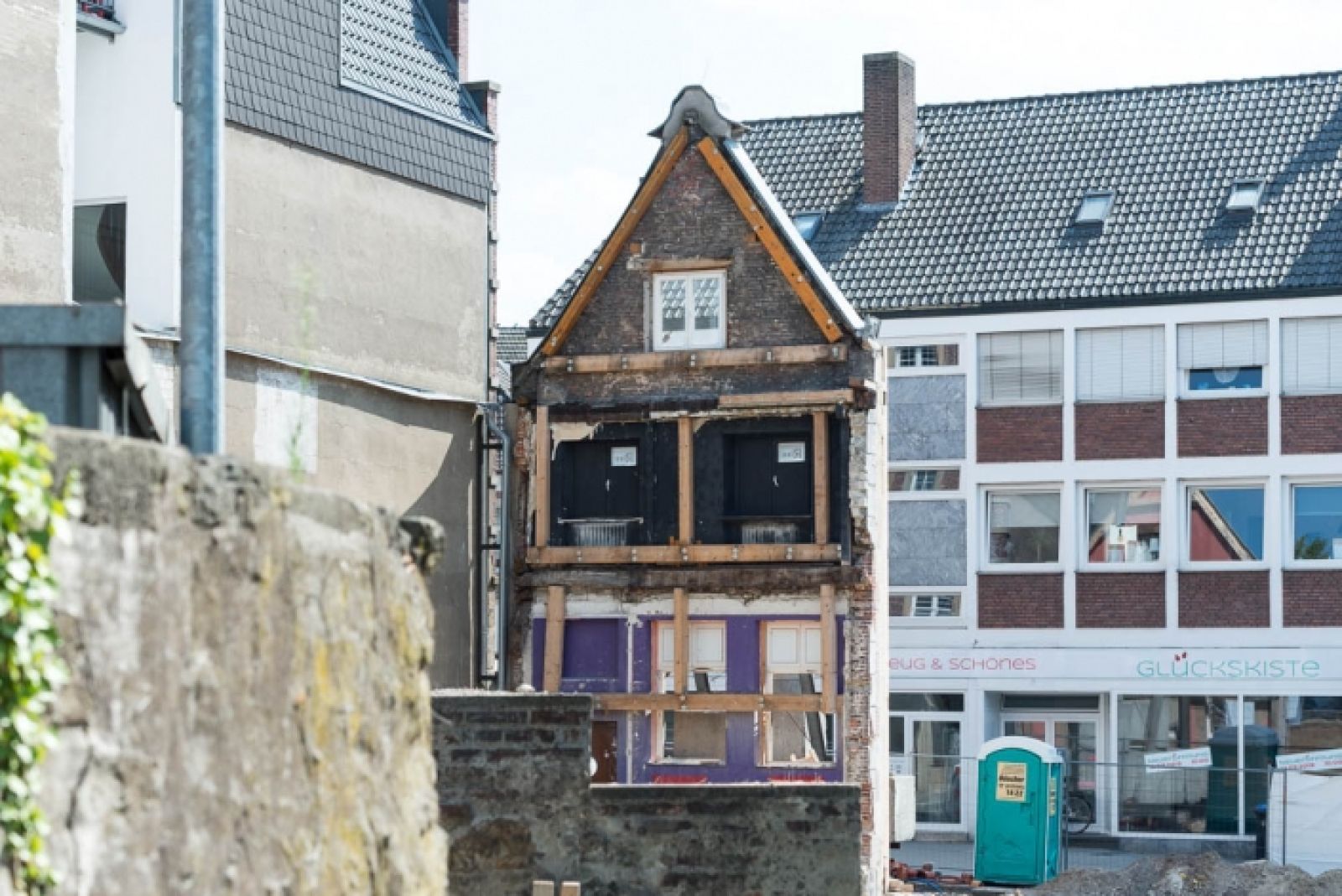 Hier wird ein Wohn- und Geschäftshaus entstehen, welches den denkmalgeschützten Giebel wieder integriert.