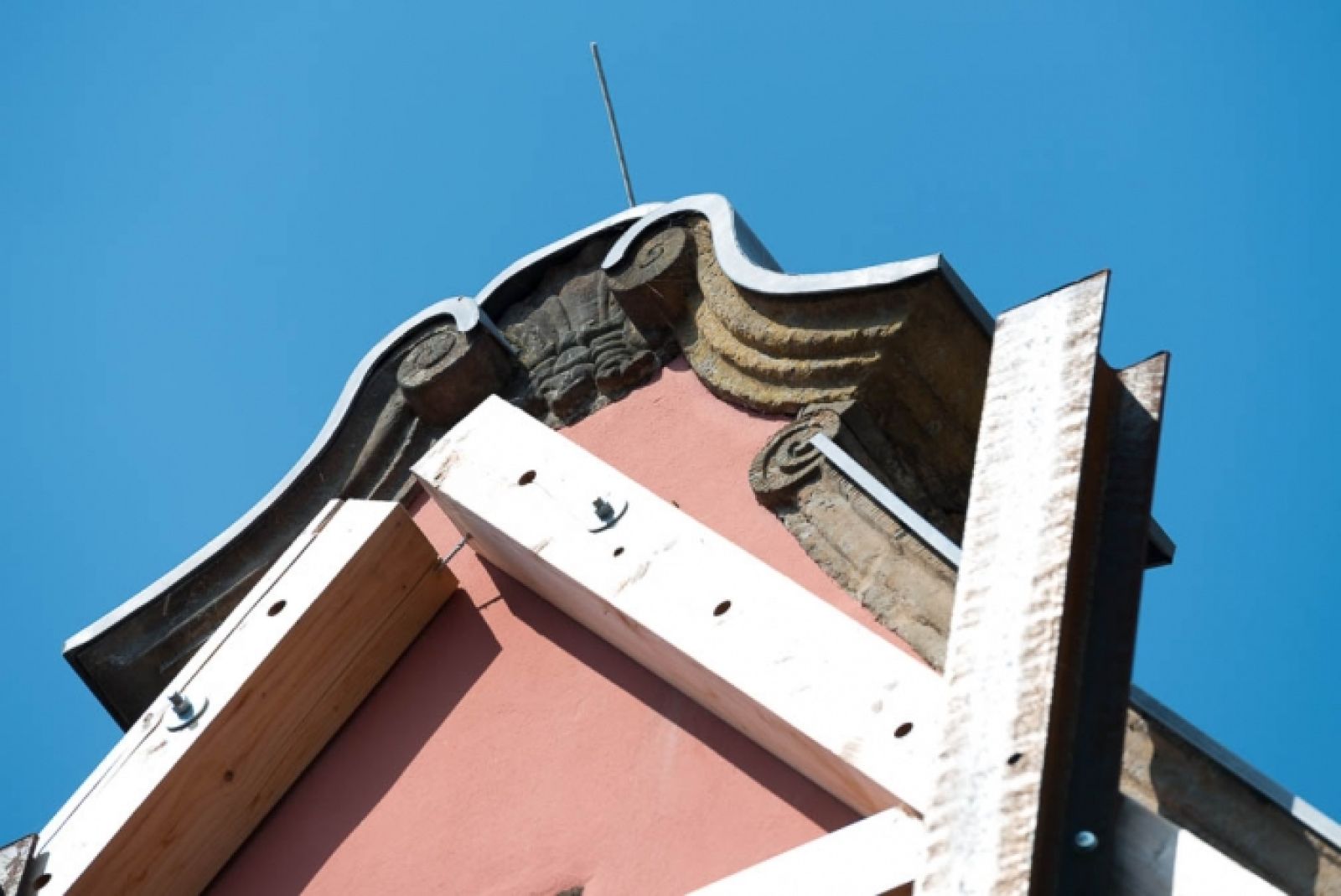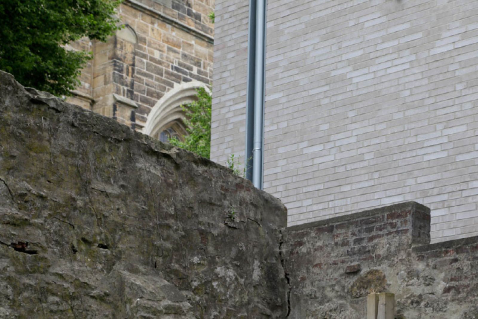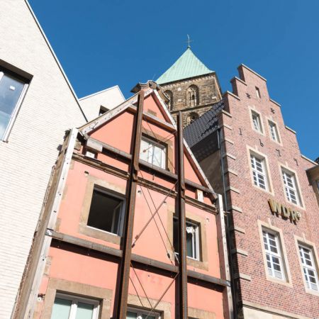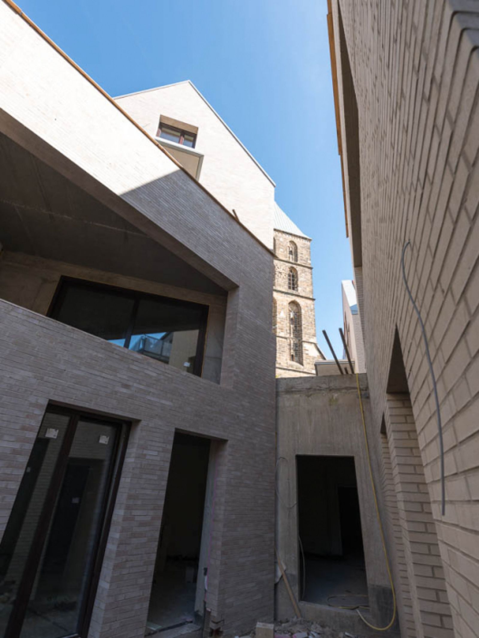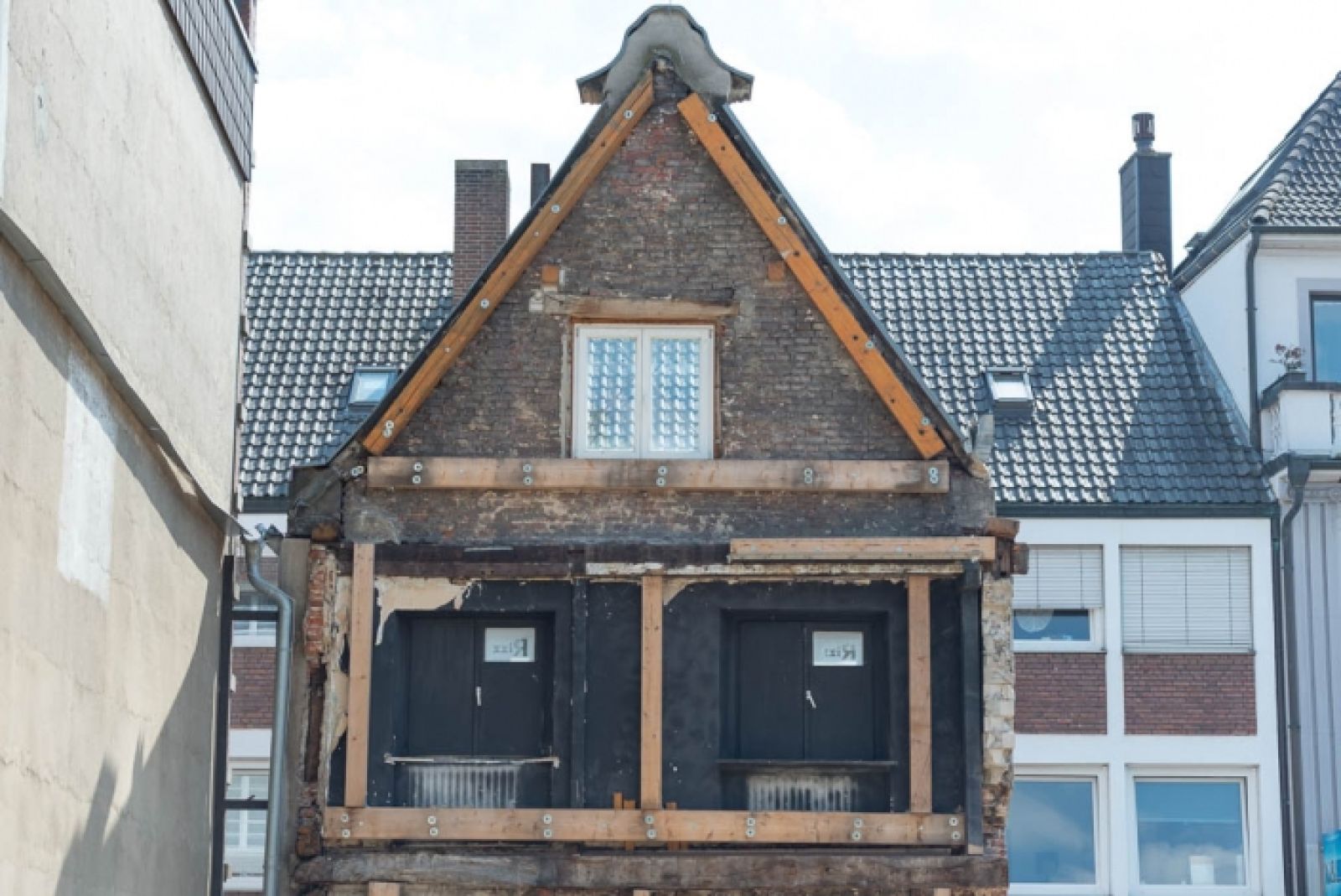 Hier wird ein Wohn- und Geschäftshaus entstehen, welches den denkmalgeschützten Giebel wieder integriert.