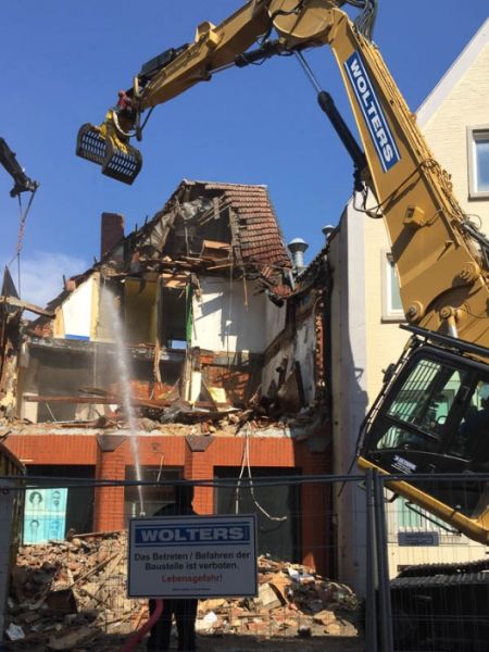 Nachdem die Giebelsicherung des unter Denkmalschutz stehenden Giebels der Marktstraße Nr. 6 abgeschlossen wurde, ist mit den Abbrucharbeiten an der Marktstraße begonnen worden.